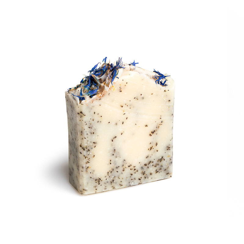 INCI: Olea Europaea (Olive) Fruit Oil, Aqua, Orbignya Oleifera Oil (Babassu Seed Oil), Cocos Nucifera (Coconut) Oil, Oryza Sativa (Rice) Bran Oil,Sodium Hydroxide, Butyrospermum Parkii (Shea Butter), Brassica Campestris Oleifera Oil, Persea Gratissima (Avocado) Oil, Centaurea Cyanus (Cornflower) Flower, Papaver Rhoeas (Corn Poppy) Seed.